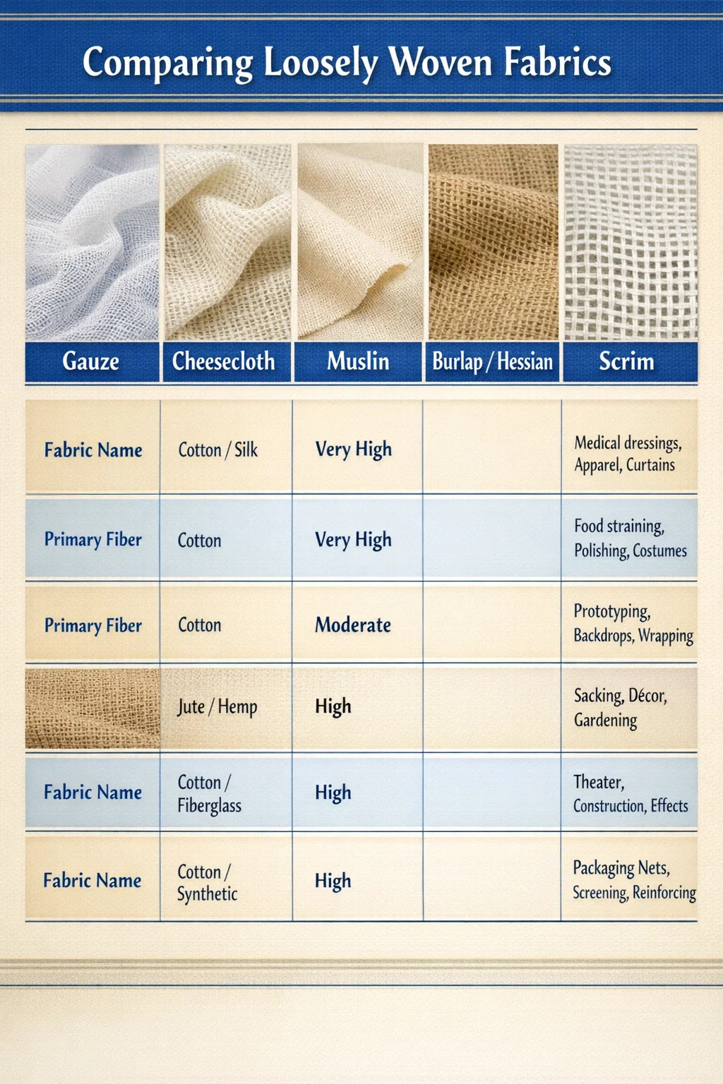 - An bhfuil tacaíocht struchtúrach uait? Chun plástar, drywall, nó cumaisc a neartú, soláthraíonn scrim fiberglass nó leno weave an chobhsaíocht tríthoiseach atá in easnamh ar cheesecloth plain.